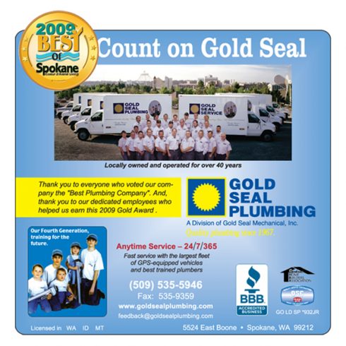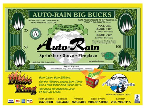 Ad for Auto Rain Sprinkler & Fireplace, Spokane to Lewiston